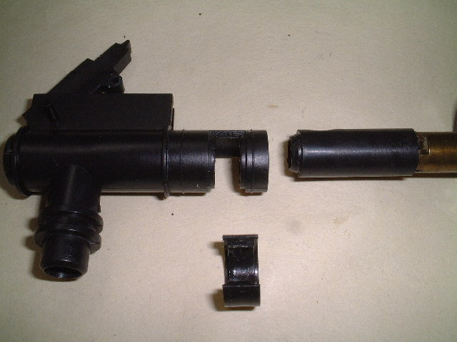 Bインナーバレルを『参式滑空銃身』に差し替えます。『参式滑空銃身』のミゾにチャンバーパッキンの凸部を合わせて差し込みます。 | |