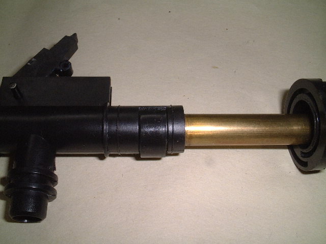 C『参式滑空銃身』をチャンバーの奥までしっかり差し込み、ストッパーリングで固定します。ストッパーリングの方向に注意してください。 ストッパーリングが浮いた感じにならないようにキチンと組み込みます。 | |
