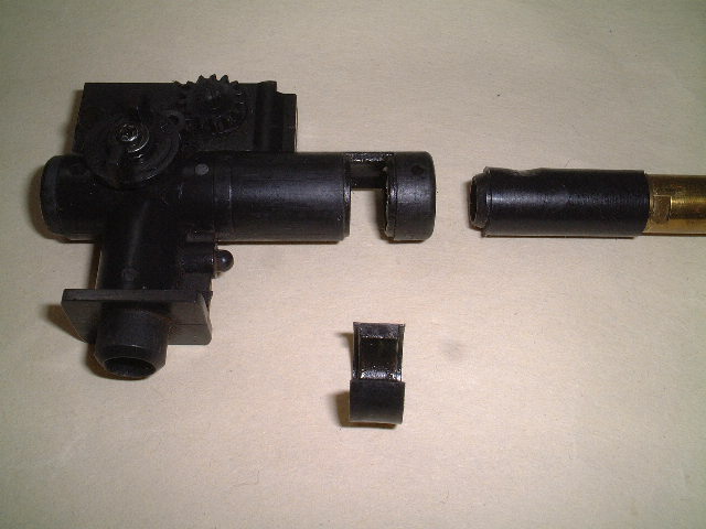 Dホップレバーやクッションゴムは、分解して組み直すほうが確実ですが、クッションゴムが、正しい位置にあることを確認した上で、チャンバーパッキンと『参式滑空銃身』を組み込む事もできます。 | |