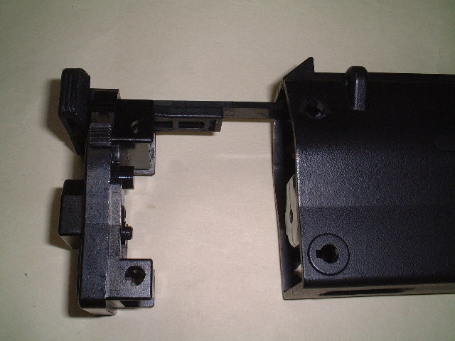 DメカBOXを組み込むときには、メカBOX上部のピンにカットオフロッドをかみ合わせる必要があります、かみ合わせた状態でメカBOXスペーサーを組み込みます。ご注意ください。 |