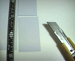 H厚紙からスペーサを切り出す。幅45mm、長さ88mmで切り出すと、ぴったりとサプレッサに収まる |